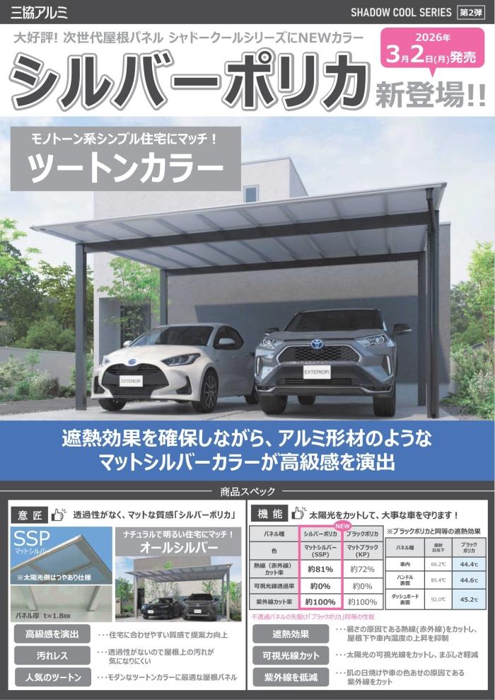 三協アルミが2023年10月に打ち出し、業界を席巻した「ブラックポリカ」の第2段、『シルバーポリカ』が、3/2から発売開始です!